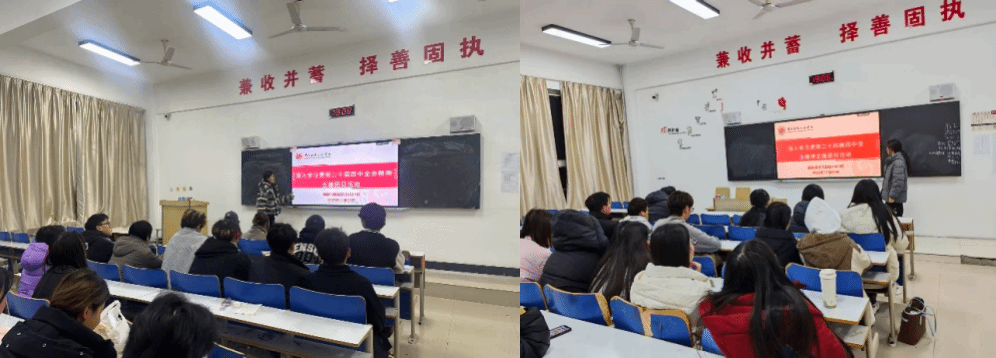 为引导青年学子深刻领会党的二十届四中全会精神,将个人专业成长融入中国式现代化建设大局,2025年11月26日,242net亚洲必赢各班集中开展“深入学习贯彻党的二十届四中全会精神”主题团日活动,全院师生通过专题解读、案例分享、互动研讨等形式,掀起学习热潮,筑牢思想根基。