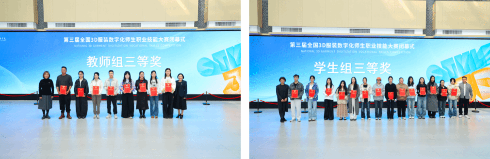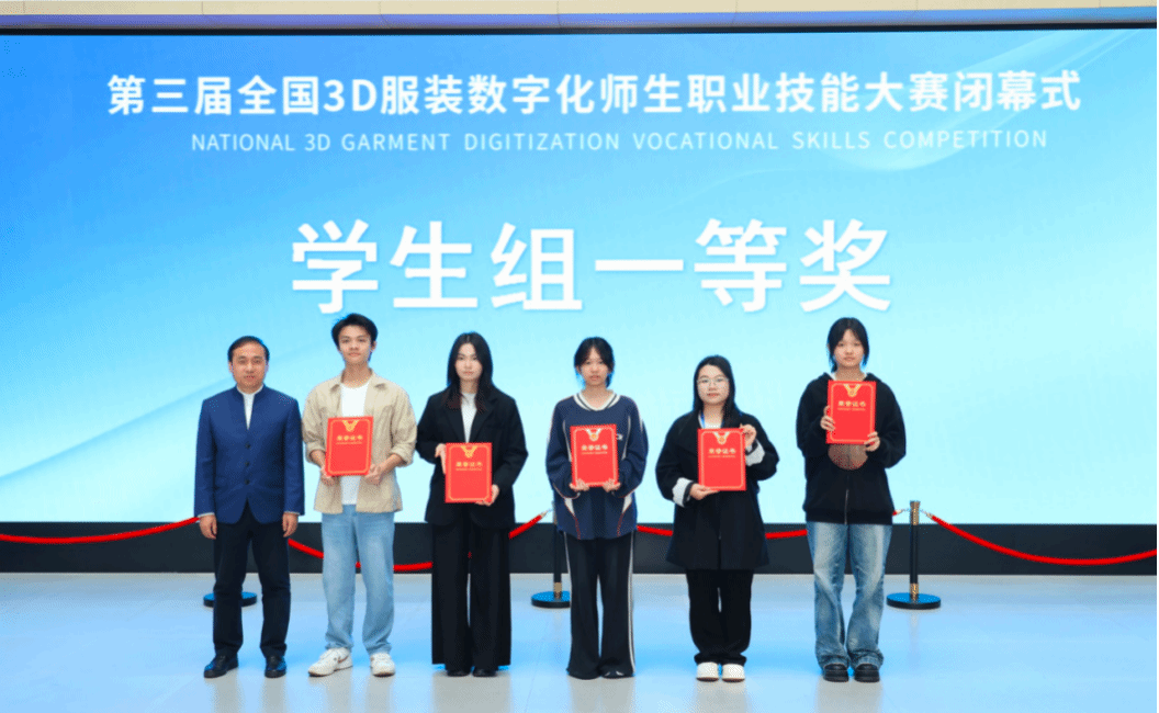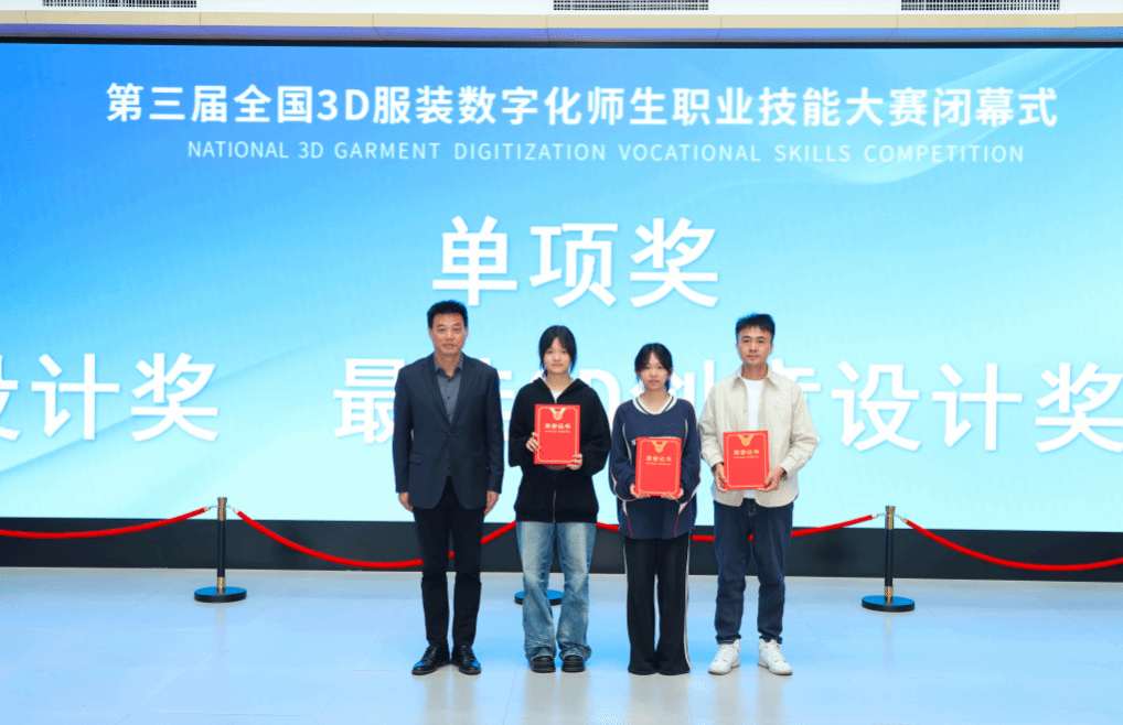 颁奖典礼中,我院师生亮点频现,成为颁奖现场的焦点。服装设计与工程2201班学生侯嘉汇表现尤为突出,不仅摘得学生工艺组全国一等奖,其作品凭借出色的视觉呈现与精湛的技术完成度,一举拿下“最佳3D建模设计奖”,成为双料赢家;服装工程系梁盈春老师则在理论考试中创下全国唯一满分的佳绩,获颁奖现场特别表扬,充分展现了我校教师深厚的专业理论功底。