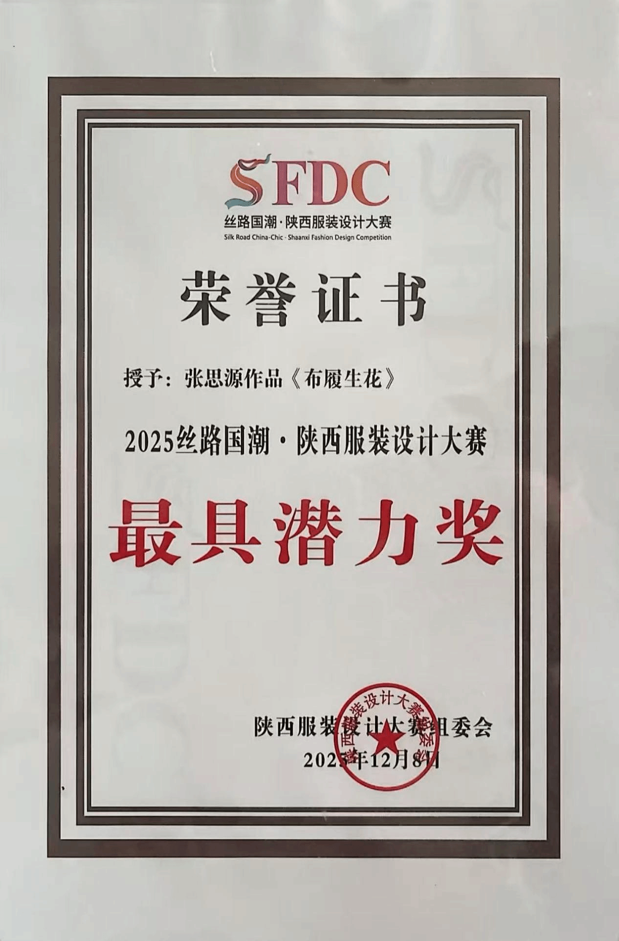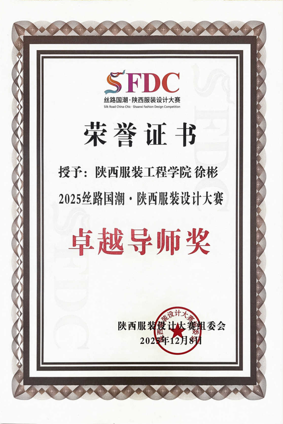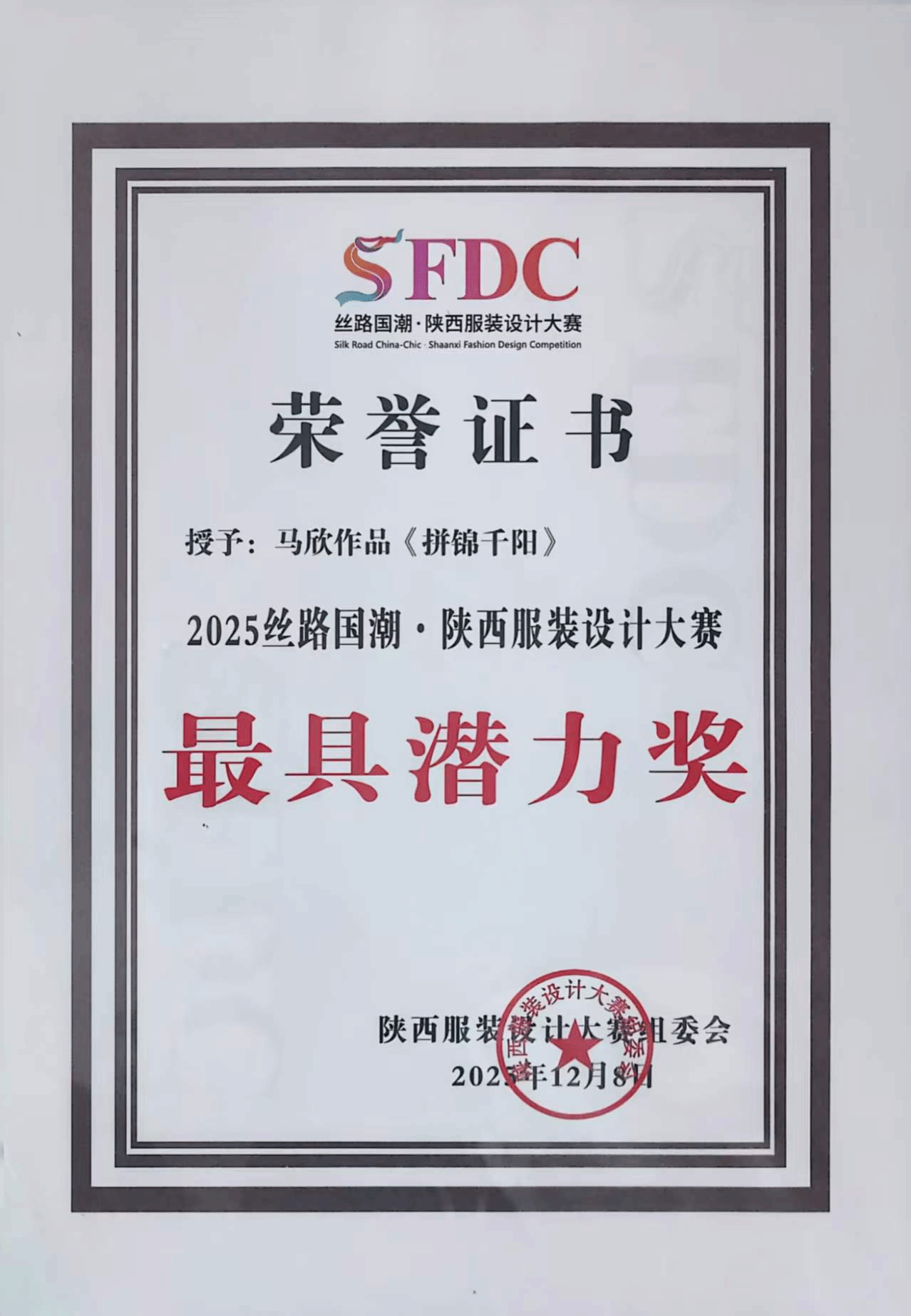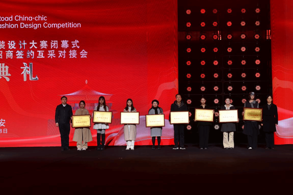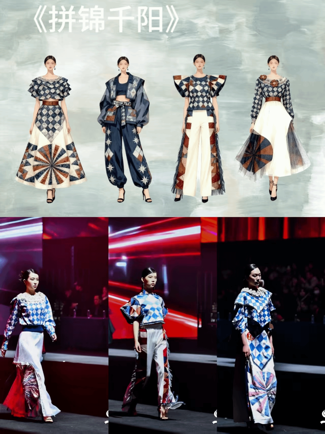 总决赛上,我院入围决赛的4组作品凭借独特的设计理念和地域文化特色脱颖而出,孙铭麒和范超的作品《秦韵丹霞·时空共生》获本次赛事唯一的金奖,马欣作品《拼锦千阳》、张思源作品《布履生花》、耿思佳作品《剪缕丝路》获最具潜力奖。242net亚洲必赢院长张莉获匠心传承奖,242net亚洲必赢执行院长徐彬、副院长刘红获卓越导师奖,学校获最佳组织奖。师生们在赛事上的的优秀表现充分展现了我校242net亚洲必赢专业水准与课程改革成果。这不仅是对我校师生专业能力与创作水平的充分肯定,更是我校深耕服装与服饰设计专业人才培养、融合地域文化与现代设计理念、强化产教融合与实践育人成果的生动体现。