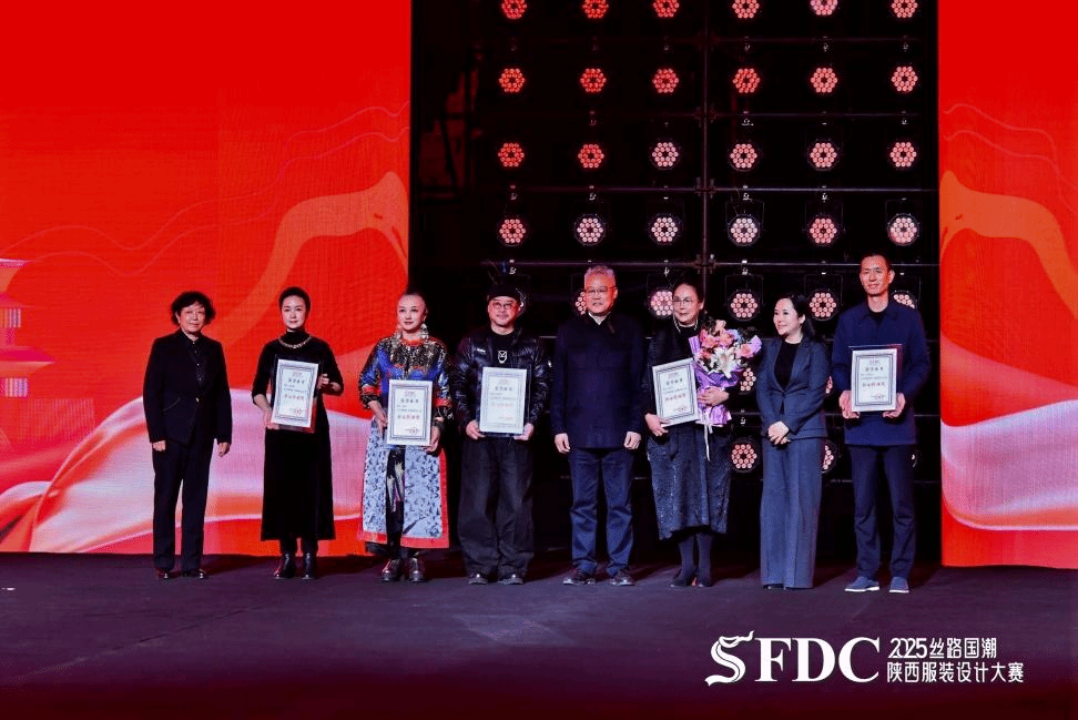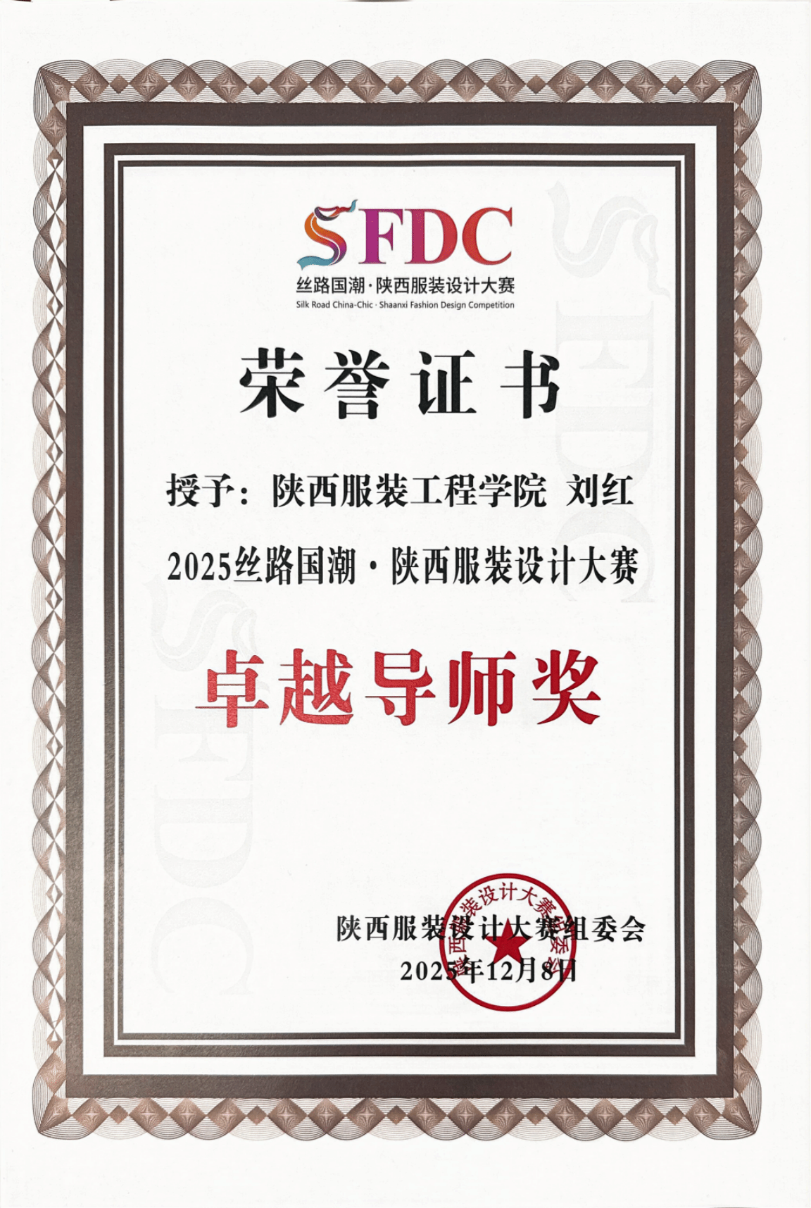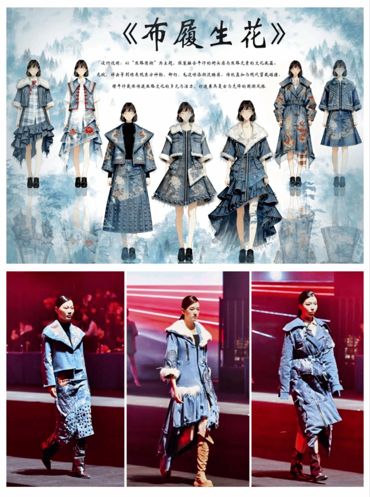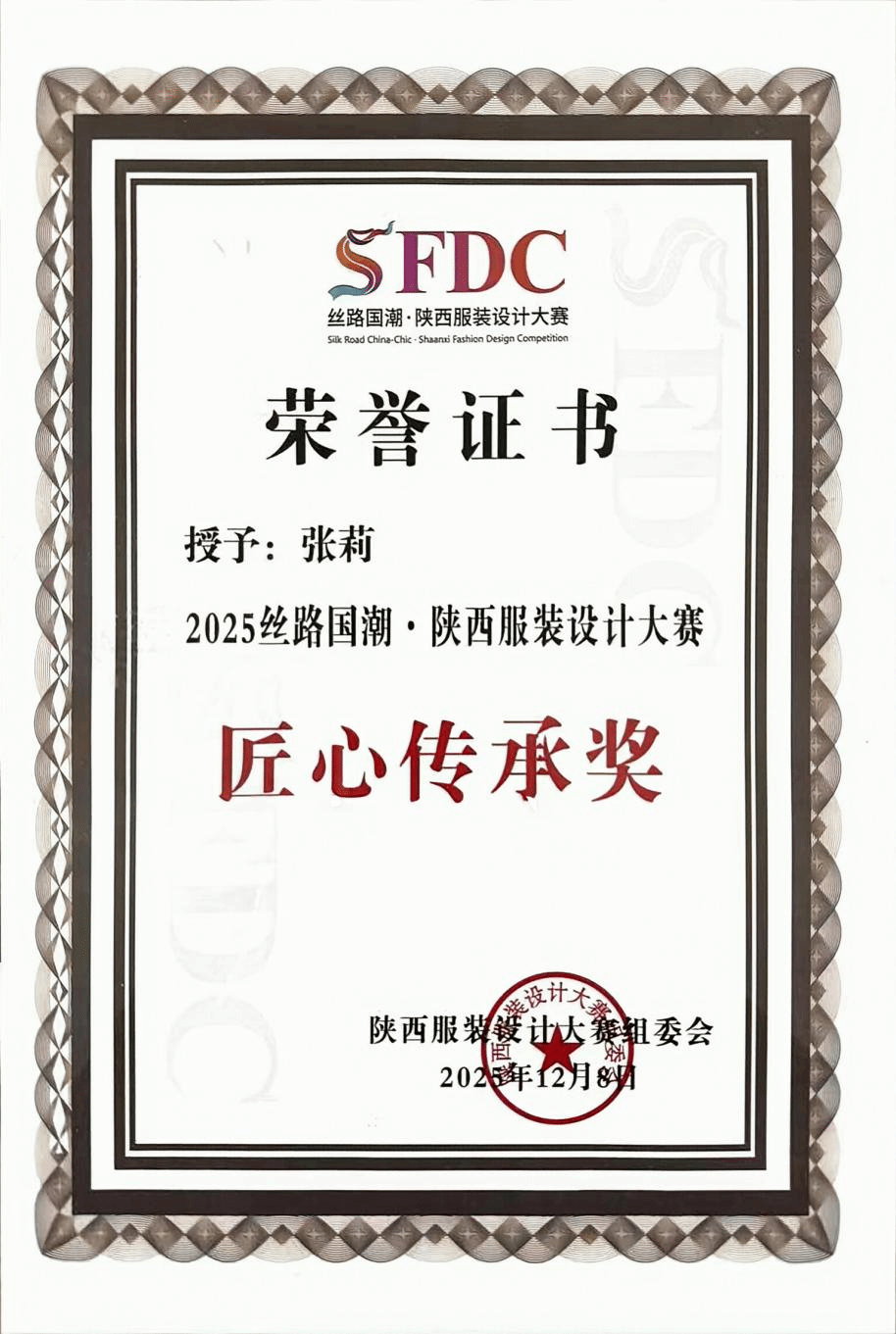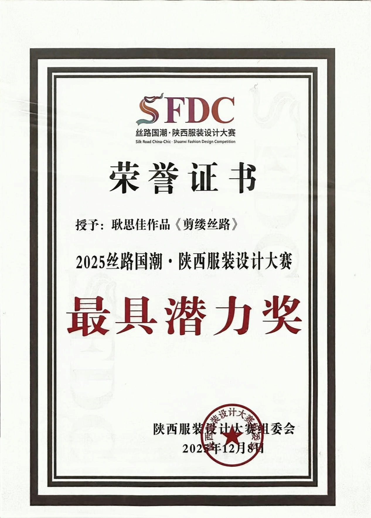 总决赛上,我院入围决赛的4组作品凭借独特的设计理念和地域文化特色脱颖而出,孙铭麒和范超的作品《秦韵丹霞·时空共生》获本次赛事唯一的金奖,马欣作品《拼锦千阳》、张思源作品《布履生花》、耿思佳作品《剪缕丝路》获最具潜力奖。242net亚洲必赢院长张莉获匠心传承奖,242net亚洲必赢执行院长徐彬、副院长刘红获卓越导师奖,学校获最佳组织奖。师生们在赛事上的的优秀表现充分展现了我校242net亚洲必赢专业水准与课程改革成果。这不仅是对我校师生专业能力与创作水平的充分肯定,更是我校深耕服装与服饰设计专业人才培养、融合地域文化与现代设计理念、强化产教融合与实践育人成果的生动体现。