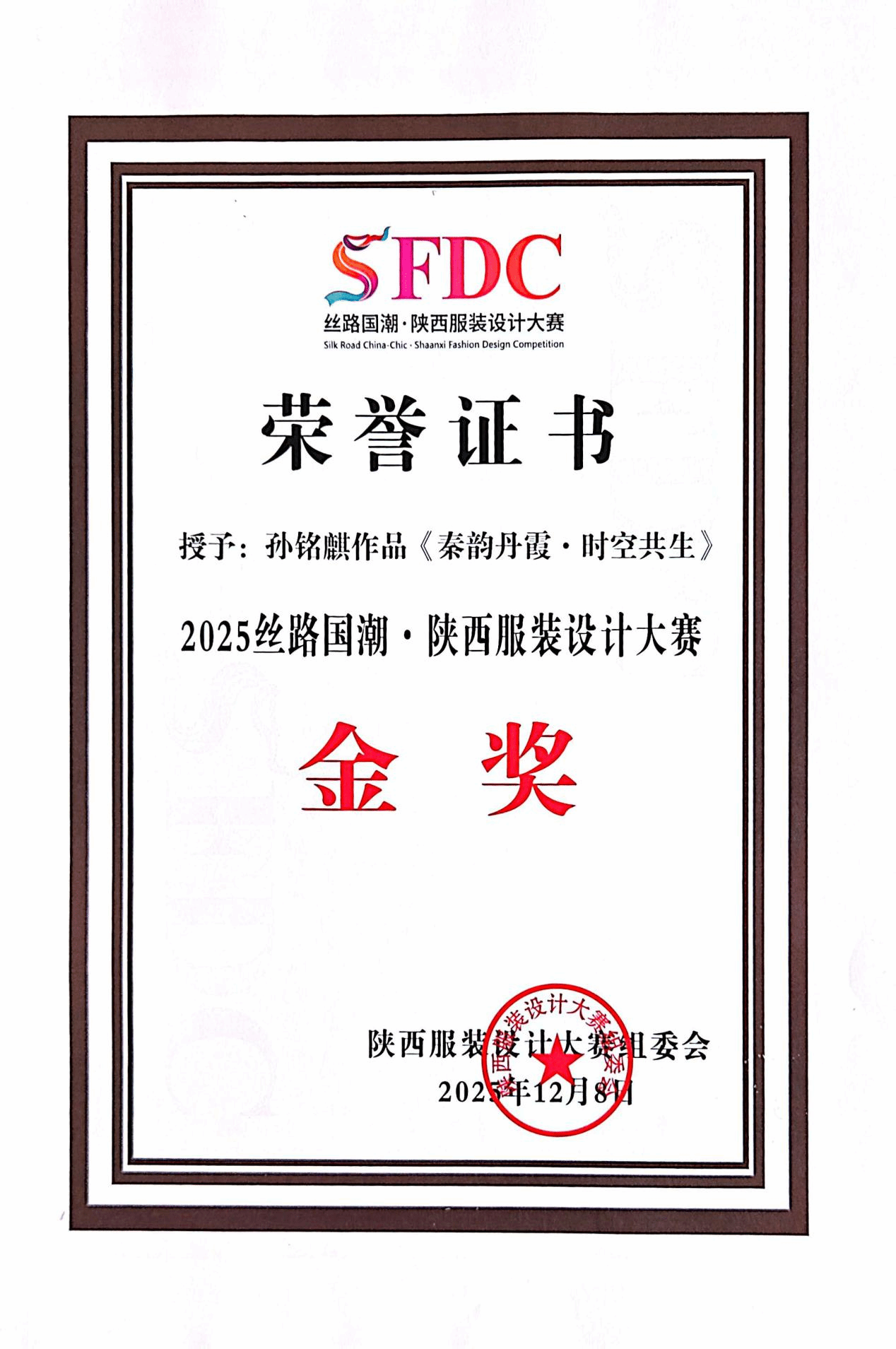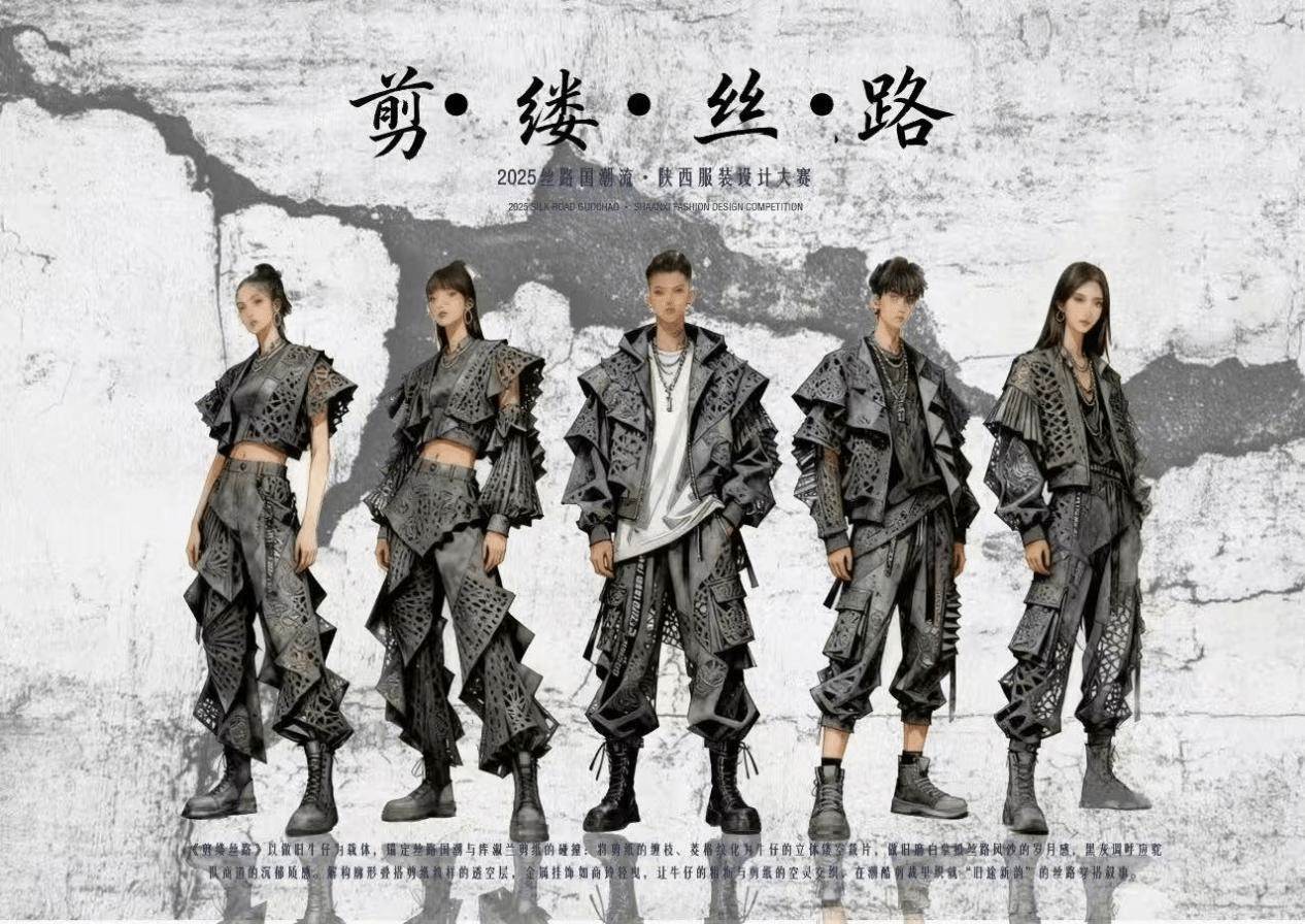近日,2025陕西服装设计大赛在曲江竞技中心举办。来自俄罗斯、法国、泰国、哈萨克斯坦、摩洛哥等5个国家和国内多省(含香港)的53所高校师生、企业以及独立设计师的2216份作品参赛。经评审专家组遴选,25组选手入围决赛,大赛评委在入围作品中评出金奖1项、银奖2项、铜奖3项和优秀奖。我院学子斩获了本届赛事的唯一金奖。